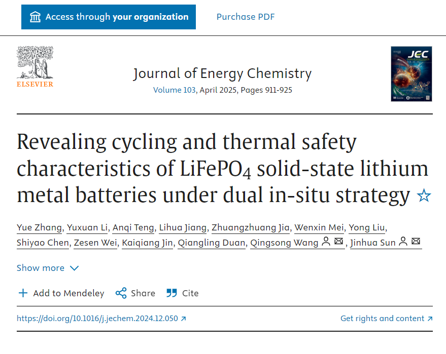 中國(guó)科學(xué)技術(shù)大學(xué)王青松教授團(tuán)隊(duì)在Journal of Energy Chemistry(IF:14)發(fā)表題為Revealing cycling and thermal safety characteristics of LiFePO4 solid-state lithium metal batteries under dual in-situ strategy的論文,該成果由中國(guó)科學(xué)技術(shù)大學(xué)火災(zāi)科學(xué)國(guó)家重點(diǎn)實(shí)驗(yàn)室、廣東省重點(diǎn)領(lǐng)域研發(fā)計(jì)劃(2024B1111080001)、國(guó)家自然科學(xué)基金(52204248和52474258)和中國(guó)科學(xué)院青年創(chuàng)新促進(jìn)會(huì)(Y201768)等機(jī)構(gòu)聯(lián)合支持。